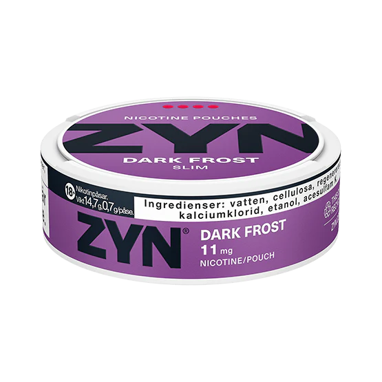 ZYN DARK FROST SLIM EXTRA STRONG kombinerar en rik och piggande smak av mörka bär och menthol med en bekväm smal prilla. Prillan är mjuk och lätt fuktad för en skön känsla i munnen, samtidigt som den ger en jämn och kontrollerad frisättning av både smak och nikotin. Med extra stark nikotinstyrka på 11 mg per prilla är denna produkt perfekt för dig som söker en mer intensiv nikotinupplevelse.